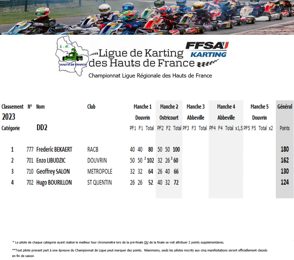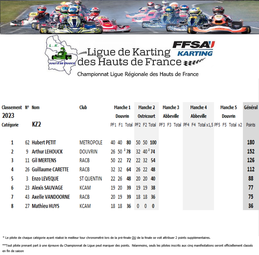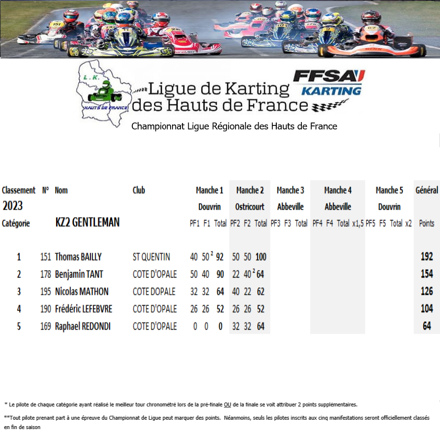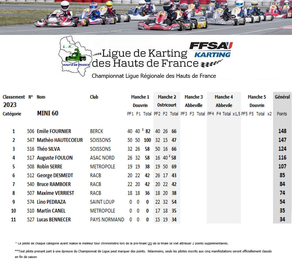 Résultats de la courses manche par manche: CHP Ligue hauts de france OSTRICOURT