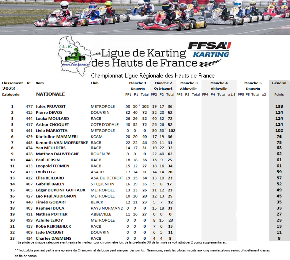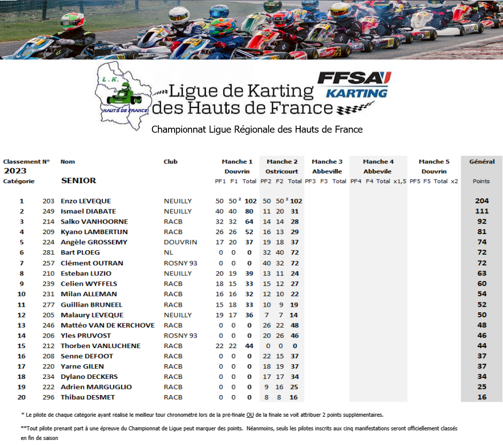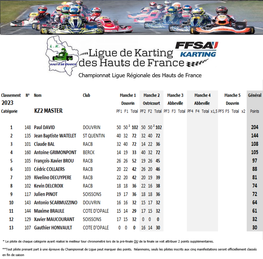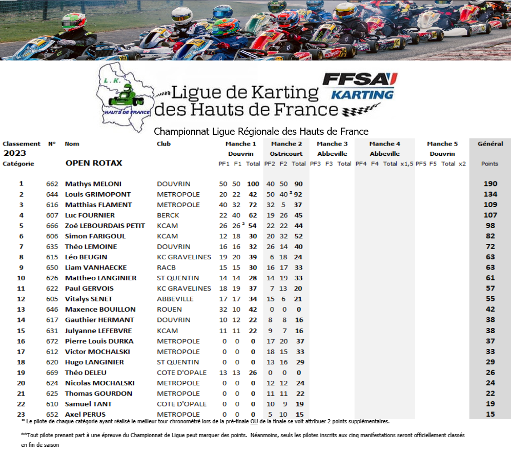 Résultats de la courses manche par manche: CHP Ligue hauts de france OSTRICOURT