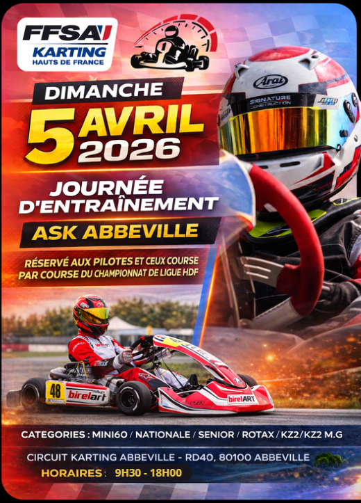 Championnat Informations générales Jean François Malinowski 7 février 2026 Préparez votre début de championnat avec les journées roulage à Abbeville.